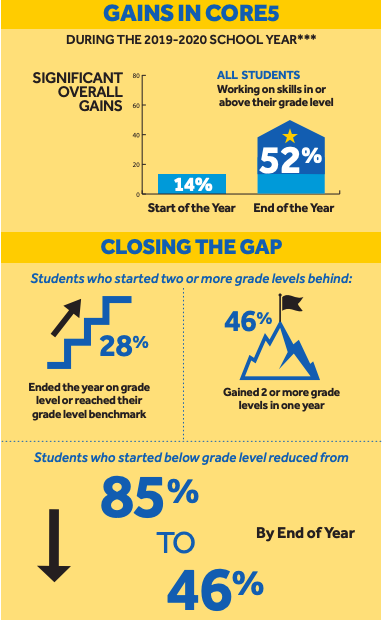 While many reading programs may be described as research-based, Core5 is research-proven to improve learning outcomes. Core5 is evaluated by using rigorous scientific methods and has been found effective with a variety of populations to help close the literacy gap in as little as 10 weeks.